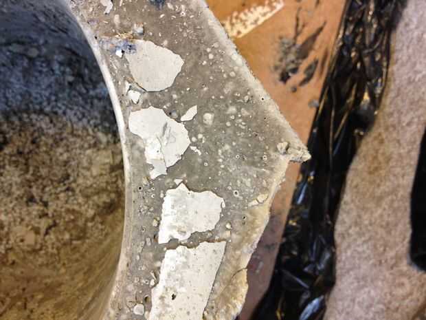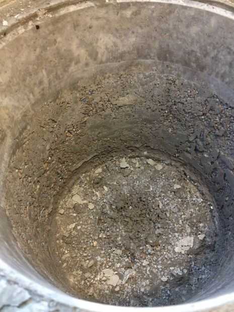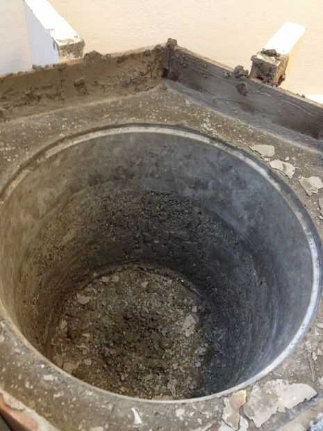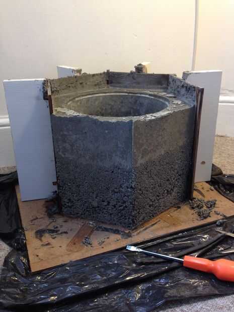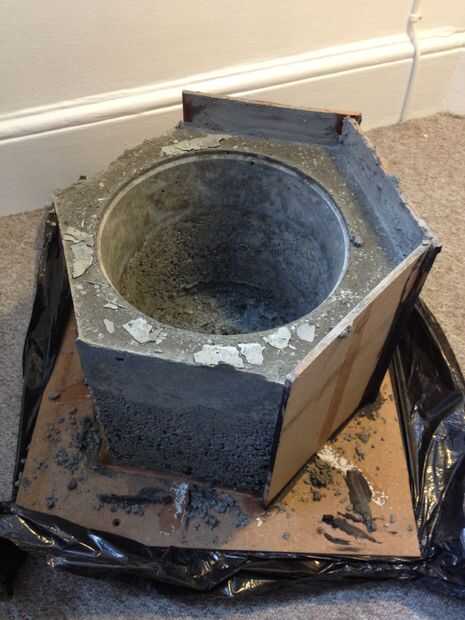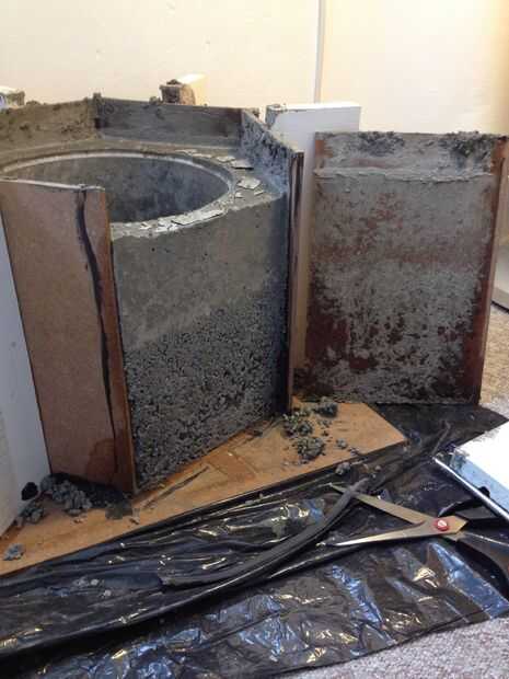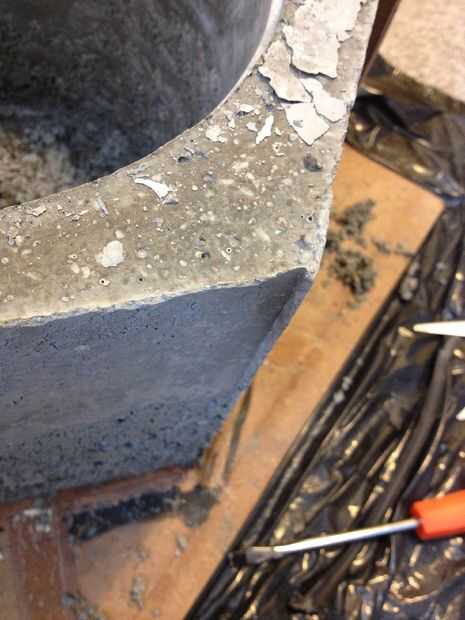 Después del jaleo explicado en el paso anterior, pensé la maceta se iba a desmoronar al desmontar la forma. Por suerte, esto no pasó. Durante el tiempo la maceta tardó en endurecerse, me convencí de las dos capas de concreto se verían intencionales y podría decir a los demás que lo hice aposta.