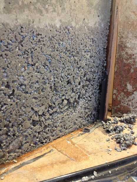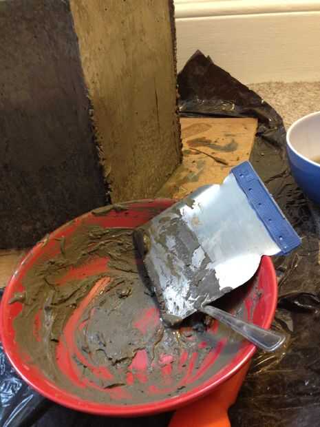 Debido a las lagunas átomicas en la parte maceta del inferior de la, decidí sería mejor enlucir esta parte con argamasa elaborada con el mismo cemento. Usé una espátula y no salió tan mal.