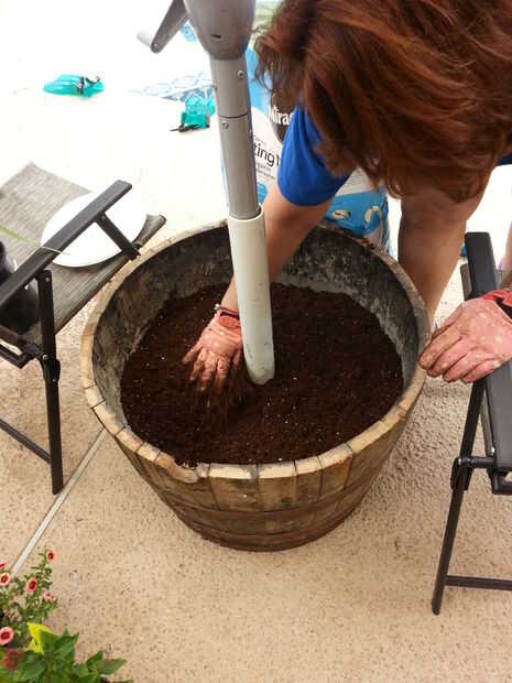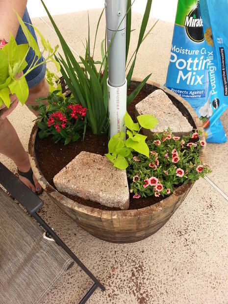 Después de esperar 24 horas para el concreto fijar, pusimos el jardín.