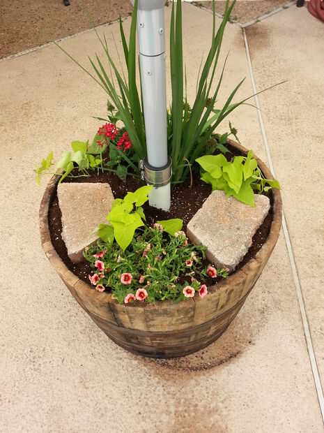 También usé una 1 1/2" a 2" acoplador flexible para ayudar a sostener a paraguas en su lugar.