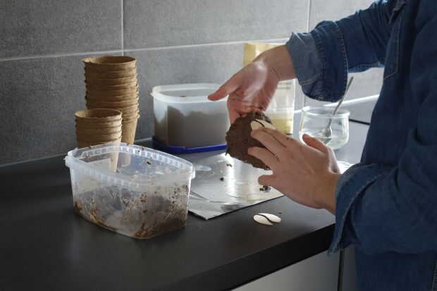 Coloque el logo de la balsa en su maceta y presione suavemente.
