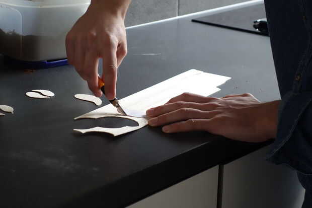 Dibujar el logotipo en un pedazo de papel y recortarlo. Transferencia en la madera de balsa (o elegir un material de otros) por el lápiz o simplemente tallar alrededor de su papel de dibujo. Arena de las asperezas que pudiera quedar sobre.