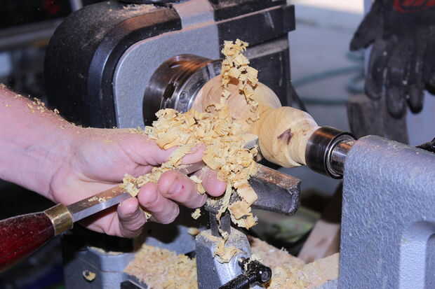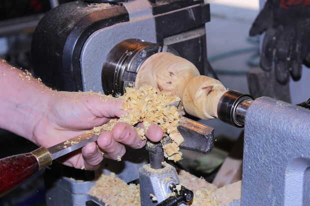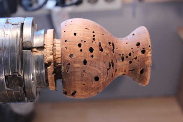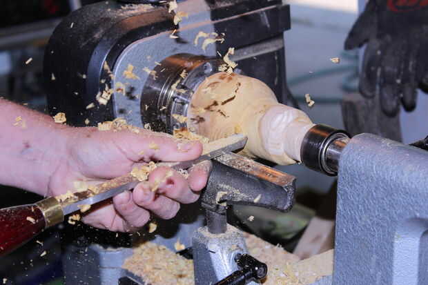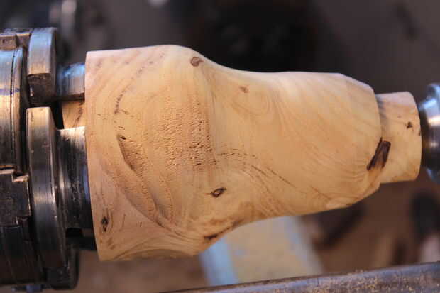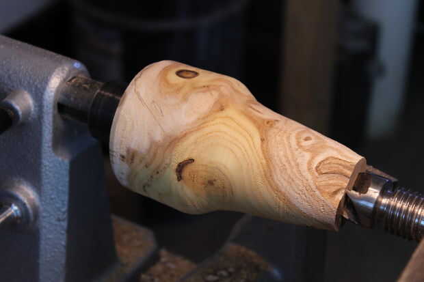 Preliminar con una gubia de tazón de fuente a mi forma acabada. Luego retirar la acción de la cola y poner el soporte de la herramienta en la cara (superior) de los cáñamos.