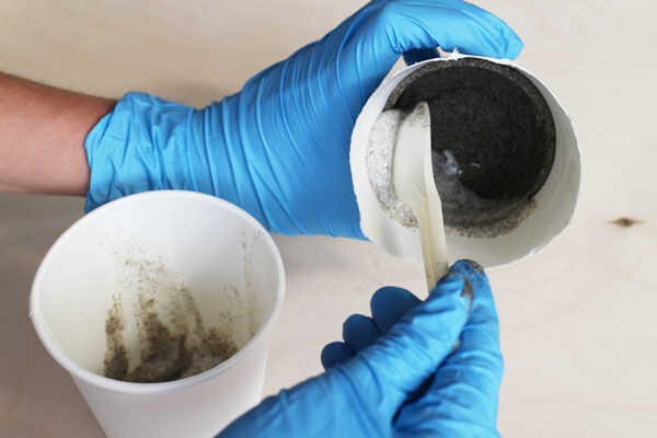 En caso de que usted quiere hacer una segunda capa, deje la seca arena espuma estancia dentro de la taza más grande. Construcción de una segunda capa puede ser interesante si utilizas espuma arena más claro o más oscuro. Puede lograr esto mediante la mezcla de arena más o menos con la espuma. Para una segunda capa más ligera mezclé 0,30 oz en la misma cantidad de parte A y B que utilicé para la primera capa.
