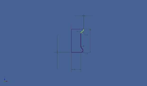 Usando el software de CAD 3d, crear un boceto para una mitad de la forma básica de la sección transversal para el bote.  Mi dibujo es de una olla que se imprimirá en una impresora 3D que tiene volumen de construcción de 8 "x 8" x 8 ".  El grueso de pared es de 2 mm.  Reducción 75% permitirá este modelo a imprimir en una impresora 3D Makerbot Replicator 2.