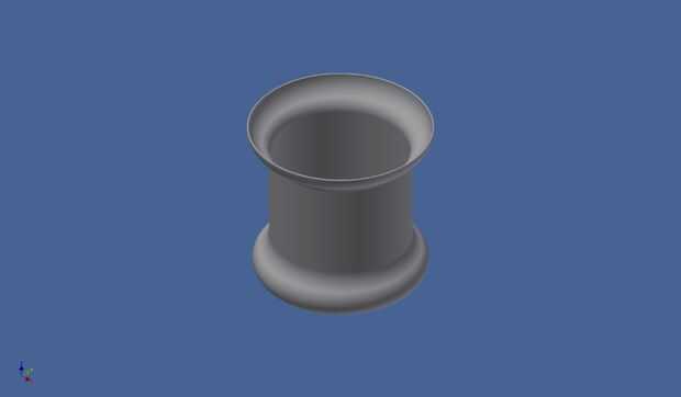 Luego agregué los filetes dentro y fuera de los bordes de la llanta.  El radio de cada filete es 1/2 de espesor, dando un borde redondo hasta el borde.
