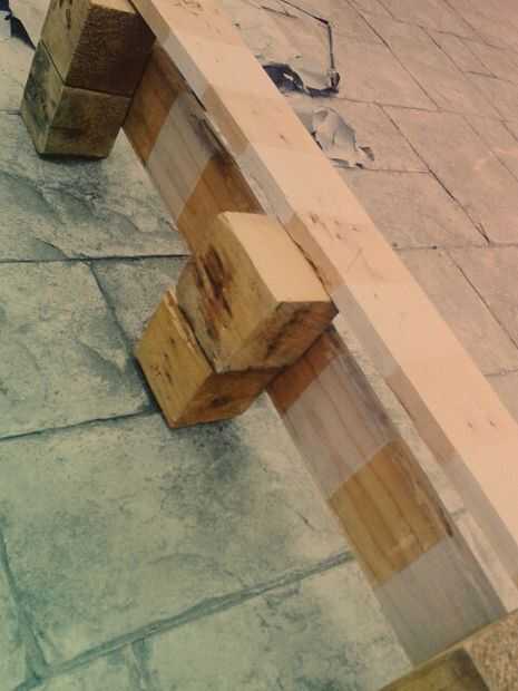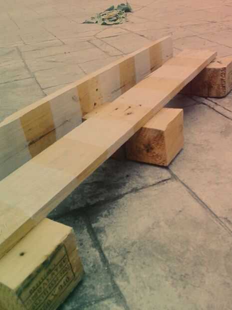 Luego utilicé un listón de madera para la base que es la que se une a los bloques (cuatro clavos a cada bloque). Luego usé otro listón en el frente de la estructura para evitar que las macetas para no caer, algo así como una valla. Puso una la parte superior de la frontera de los tres bloques en la parte delantera, y pegué su rostro más delgado y más grande a cada bloque porque es difícil clavar ese ángulo.