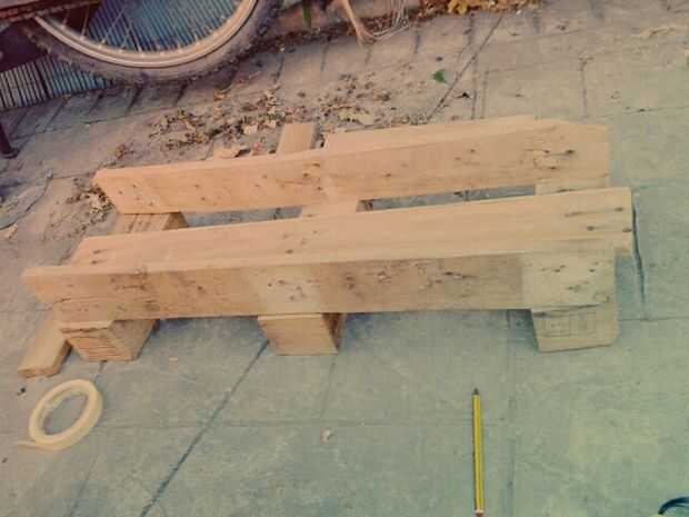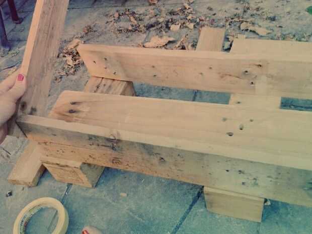 Como la guía de soporte posterior, usé dos listones se unió con dos 1/3 del otro listón. En primer lugar clavó un listón en la vertical a los bloques en la parte posterior (tres clavos en cada listón-bloque de unión). Entonces clavó a este listón un 1/3 de listón en un punto medio y luego las otras 1/3 hasta el punto de espejo del listón largo. Y después de esto puse el último listón en la parte superior de 1/3s. Mira las fotos para ver el resultado.