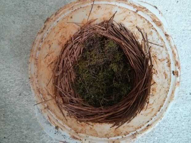 Corte el extremo de la paja de pino donde se reúnen todas las tendencias para darse más flexibilidad. Luego se mezclan todos los de la paja de pino en el lodo uniformemente. Empuje hasta los lados del tazón para redondearlo hacia fuera y dejar reposar diez minutos, así que la forma puede fijar.