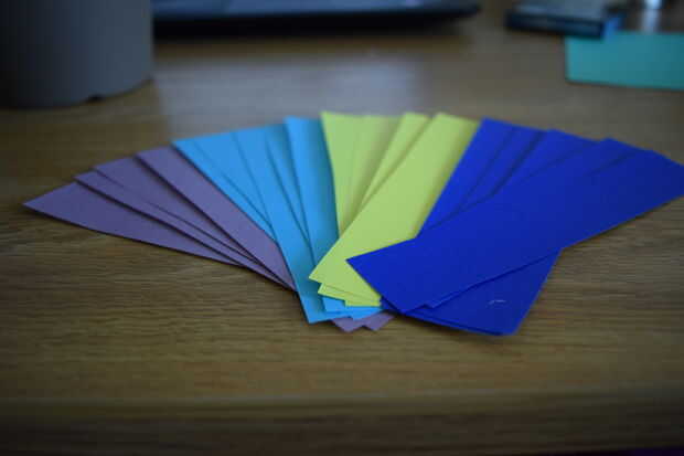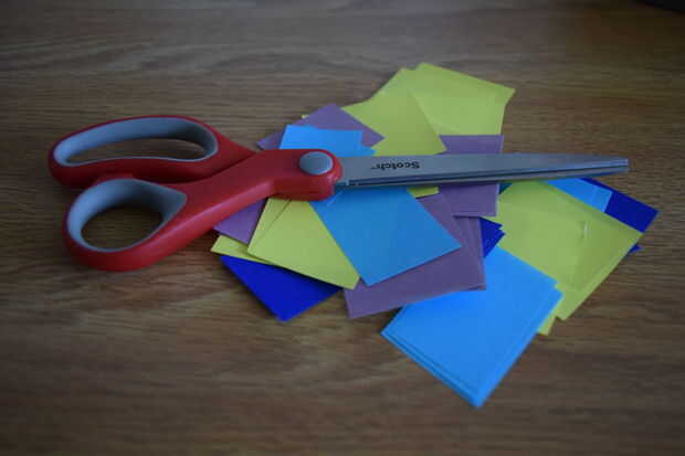 Lo primero en primer lugar, vaya por delante y corta el papel en tiras y luego las plazas. Puede hacer diseños si usted se siente de lujo, pero habrá suficientes capas donde puede perderse. Hice rectángulos simples y gustó mucho la forma que resultó!