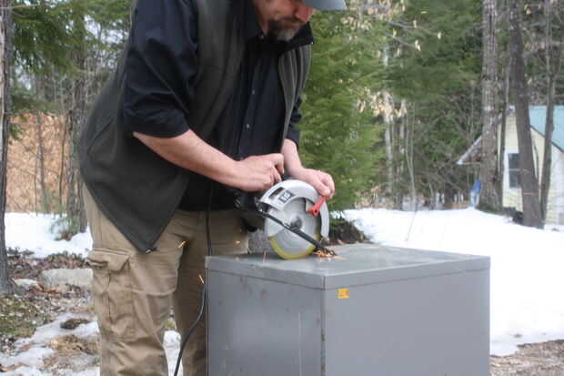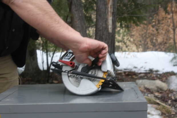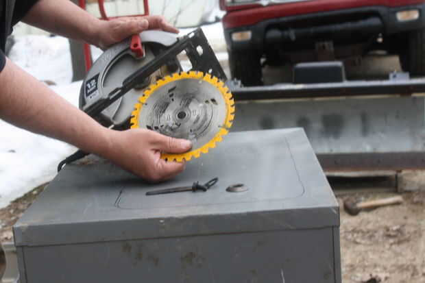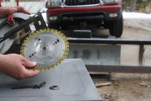 Tomar la sierra circular y reverso de la hoja (esto es un gran truco para corte de metal y es peligroso!)