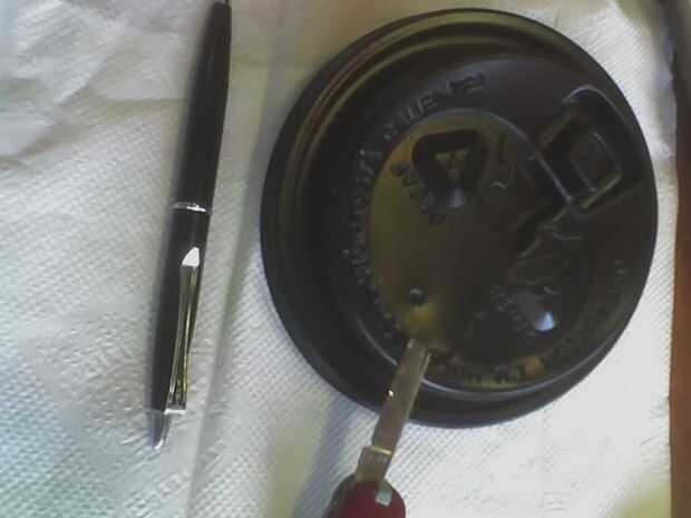 Aquí corta el agujero de mi tapa de café McCafés.