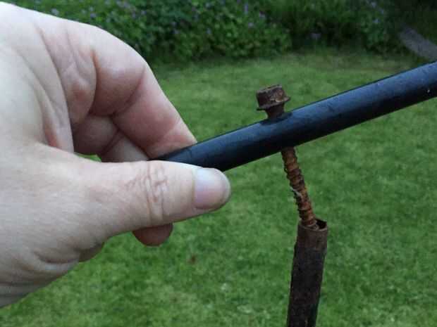 Coloque el tornillo en el orificio de la varilla o palillo.