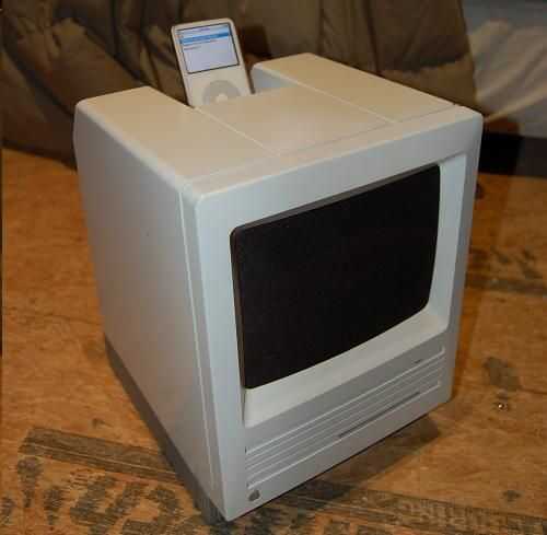 otro mod retro de mí, parece ser un tema aquí... De todos modos, este lo hice el verano pasado pero nunca lo hizo salir las fotos a internet. Lo que he hecho es destripado un roto SE Macintosh, que pensé que haría un bonito fresco estéreo Pod (y tiene un mango demasiado!). El mayor desafío que enfrenta aquí fue recrear la forma del viejo CRT tubo de imagen para una rejilla del altavoz. Mi solución era hacer un molde de yeso y fibra de vidrio que molde. Una vez que tenía la forma de fibra de vidrio es sólo una cuestión de muchos agujeros para permitir que el sonido, tratando de mantener fuerte. Yo entonces envuelto la fibra de vidrio en tela del altavoz. Luego tuve que cortar y montar el i Pod dock y dar el caso de un trabajo de pintura de dos tonos elegantes. Espero que disfrutes haciendo tu propio!
