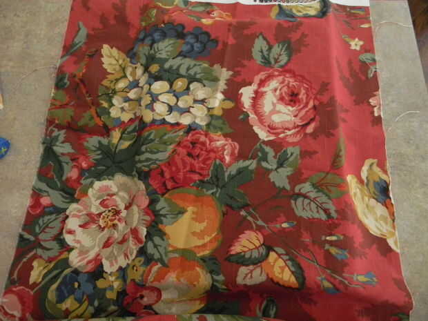 Mentira de tela en la parte posterior de la bandeja y decidir la colocación del patrón si es necesario. Luego cortar a la tela unas pulgadas hacia fuera de cada lado.