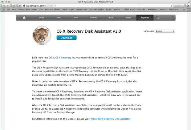 Asistente descargar Apple de recuperación de http://support.apple.com/kb/DL1433