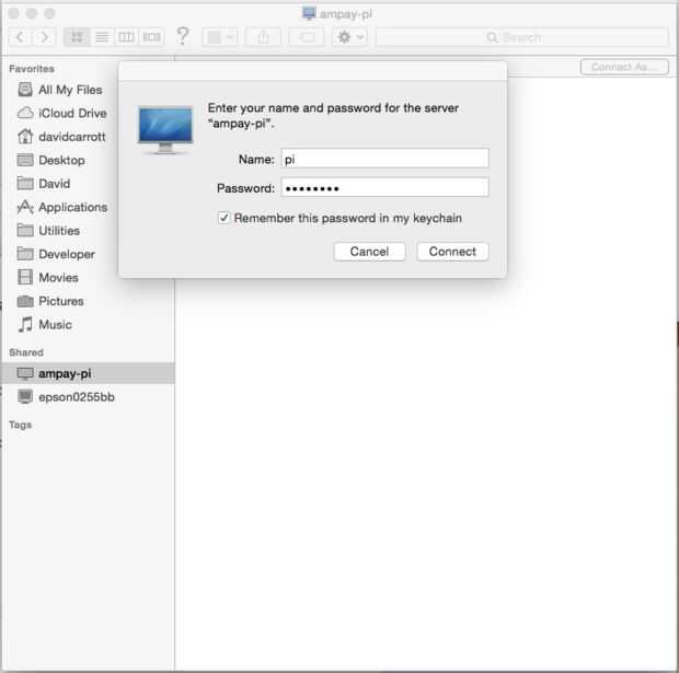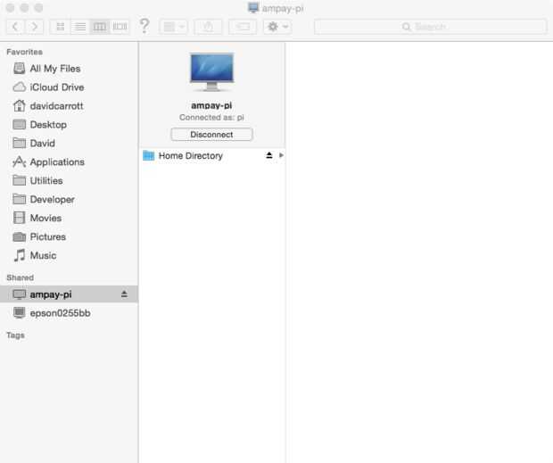 Esta forma que el RPi se presentará cada vez. Lo que a cortar y pegar archivos o directorios entre el Macintosh y el Raspberry Pi. Fácil como con el 'buscador', pero usted puede también arrastrar y soltar.