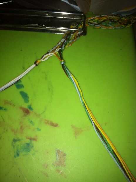 Tomar el collar de poner la parte de red en el clip en el tablero de clip. Ahora empezar a trenzar un lado de los filamentos