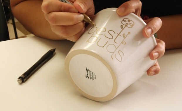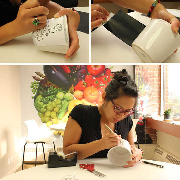 Después de que haya seguimiento, desprenda el papel y el papel de grafito para revelar una imagen débil de su diseño. Coge tu rotulador y traza otra vez. (Nos fuimos dos veces sobre el diseño).
