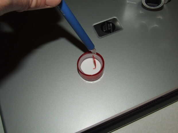 en este caso es una tapa de botella de la prescripción del objetivo. Aquí estoy usando el cuchillo para recortar el interior de la tapa de la botella para tener una leve fricción en el cilindro del objetivo. Desea el ajuste lo suficientemente apretada como para que no caiga y lo suficientemente suelta para que no tira los engranajes cuando se retrae el cilindro.