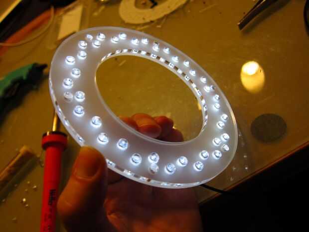 Dentro de los anillos iluminados inserta y pegada fina anillo para bloquear la luz que puede causar la llamarada.