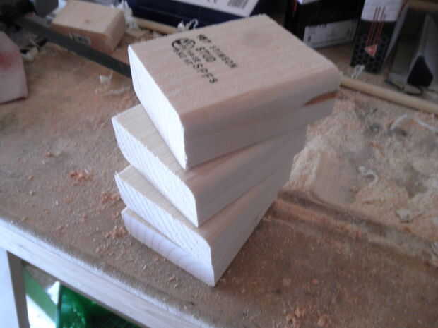 Utilicé un trozo de 2 x 4 para hacer 4 bandas para cada esquina. Cada elevador es 4 pulgadas de alto.