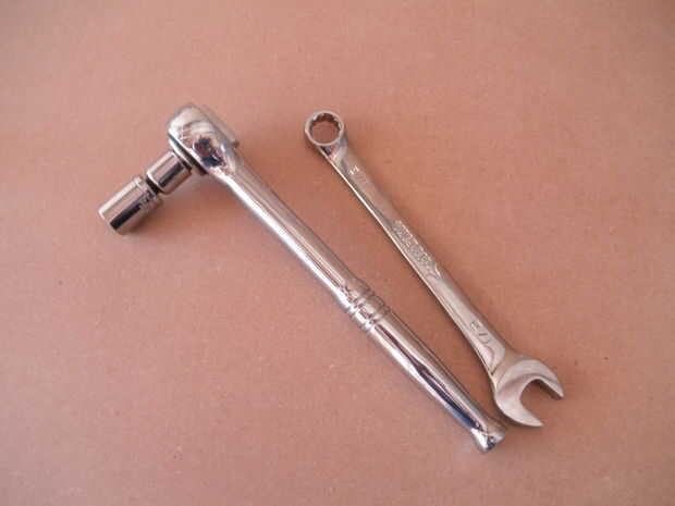 Una vez que se perfora el agujero podemos empezar a Enrosque el perno en el agujero. Empezar a mano roscado en el agujero y luego usar un trinquete y el zócalo para conseguir el perno medio en. A medio camino, no quiero arruinar mis dientes de trinquete así pasar a una llave de apertura/cierre estándar para rematar el perno. Cuando el tornillo no se mueva más es seguro asumir haber tocado fondo lo y debe ser bien apretado.