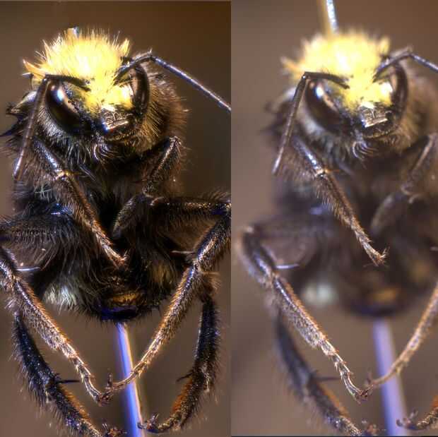 Si no está claro a cualquier persona por qué necesitamos un robot en todos, mira la foto de arriba. A la derecha es la original, la izquierda es los resultados después de utilizar el robot y la sutura las fotos. La configuración de la cámara es idéntica. ¿Por qué es uno en el derecho de tener todo en foco? Porque es realmente suturan hacia fuera de unos 25 separar imágenes a distancias de enfoque diferente.