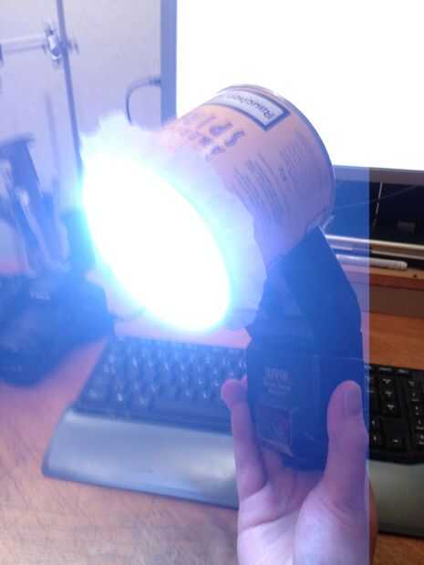 Medir las dimensiones de tu flash y marcar la superficie de la lata. Recuerde que tiene una superficie redondeada, altura es aceptable, pero anchura tiene que ser un poco más grande (diameterwise) que lo que mide...