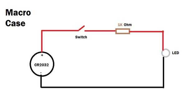 El circuito es bastante simple. Sólo una resistencia límite de corriente y un interruptor para encendido/apagado gire. 1 ohmio de k se utiliza como se ilumina la escena lo suficientemente brillante para leer valores de las resistencias 0603, inspeccione las juntas de soldadura, shorts, etc. y no sacar suficiente corriente y por lo tanto, una mayor duración.