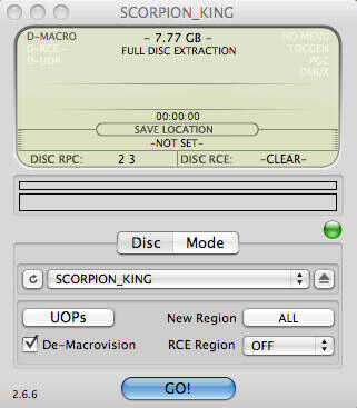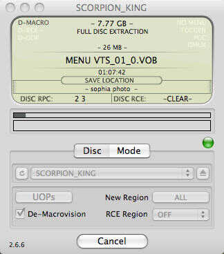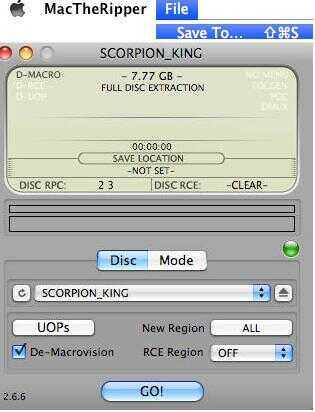 MacTheRipper es una Free DVD Ripper (Extractor) para Mac OS. Elimina encriptado CSS, protección Macrovision, conjuntos de región del disco a '0' para región-libre y es capaz de eliminar RCE región control. También puede copiar DVDs protegidos ARccOS. Esto es para copia de seguridad de tus DVDs legalmente comprados en tu disco duro fácilmente.