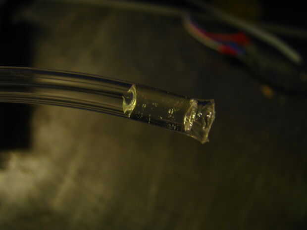 ¿6) caliente pistola de pegamento caliente todavía? llenar el extremo inferior del tubo con una pequeña cantidad de pegamento caliente y espere hasta que duro