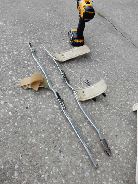 Después de todas las tiras han sido sacadas y todos los tornillos, sacados, apartar la pierna soporte.