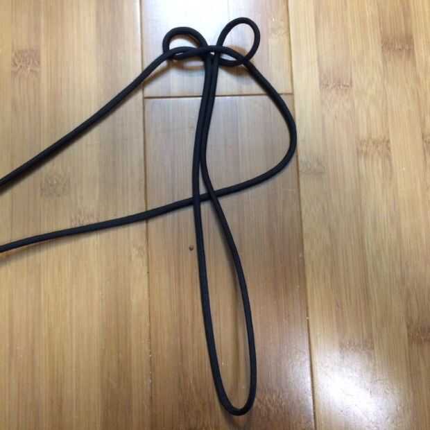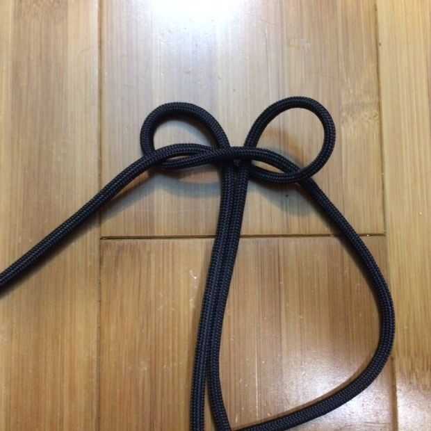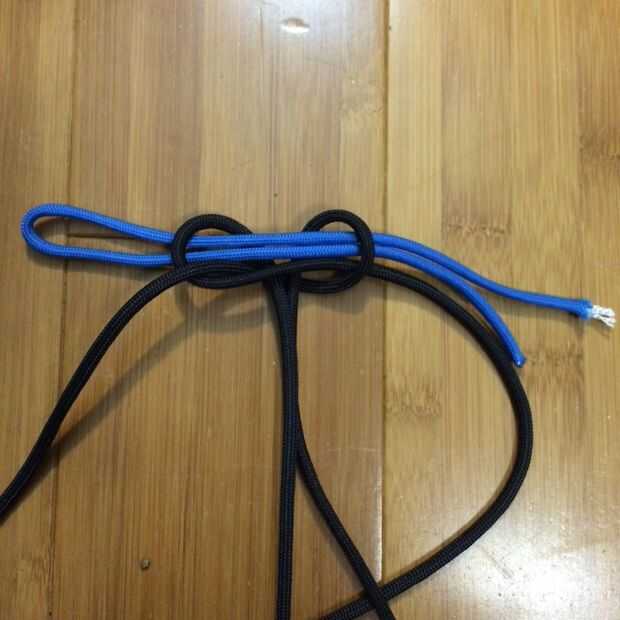 Doblar la pieza de Paracord en mitad para encontrar el centro. Con el doblez de centro, envuélvalo alrededor de su muñeca para tamaño a continuación, añadir aproximadamente 4 pulgadas. Doblar otra vez, es donde empiezas trenzando. Trae la primera pieza de paracord en todo, luego con la segunda pieza de paracord, ir sobre la parte superior de la primera pieza, luego alrededor de la parte posterior y en el agujero hecho por la primera pieza. Luego doblar el trozo de paracond en 2 y poner los lazos superior. Como en la imagen siguiente.