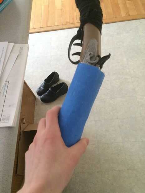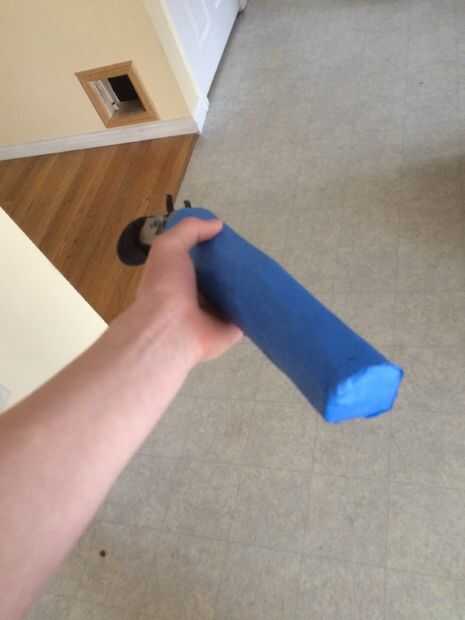 Para la funda de la pistola, tomé dos botellas de agua y cortar las tapas y fondos de. Entonces corté a alrededor de la escopeta de Sawed-Off que hice (que yo no documento). Envuelve la cosa entera con cinta de pintor para mantenerla en buena. He añadido un fondo para asegurarse de que no caiga el arma. Tomé un pedazo de cartón y medido para alcanzar de mi línea de la correa a mi pierna. Había grabado en la funda. Añadí de ranuras para el cinturón y había pintado negro.