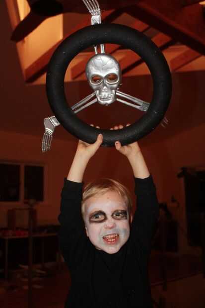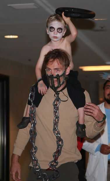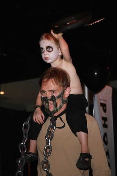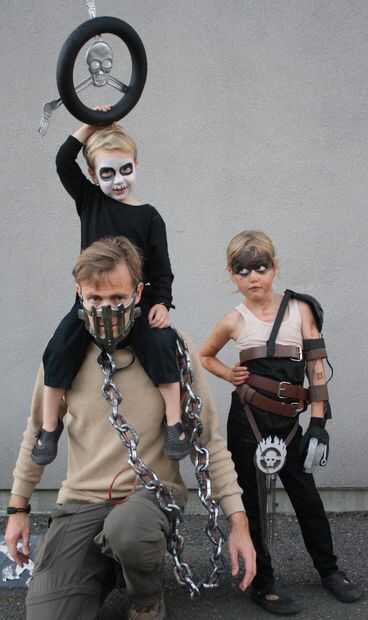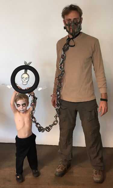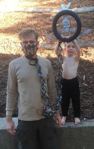 Para este Halloween, me convertí en Mad Max como una bolsa de sangre para mi hijo de 3 años guerra-boy. Nosotros mismos encadenados juntos, pintado el rostro, creado un volante Immortan Joe cráneo y roció la cara con pintura de aerosol de plata. Su cabello rubio casi translúcido ayudó a completar el traje de niño de la guerra sin realmente necesidad de afeitarse la cabeza.