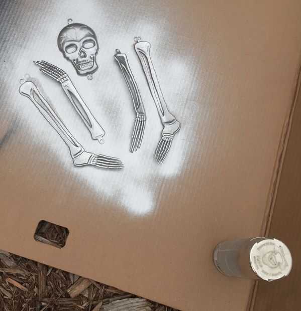 - de la espuma Toro, esqueleto de plástico y pintura en aerosol negra y plata