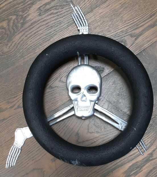 Pistola pintar el toro de espuma negro, el esqueleto plástico plata y caliente les pega en una rueda de manejo. (El epoxi que he utilizado para el sellado de la tubería no se adhiere bien a las piezas de plata-rociado).