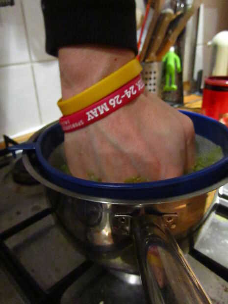 Exprimir el jugo de las uvas a través de un tamiz a una cacerola pequeña. Usted tendrá aproximadamente media taza de jugo de uva.
