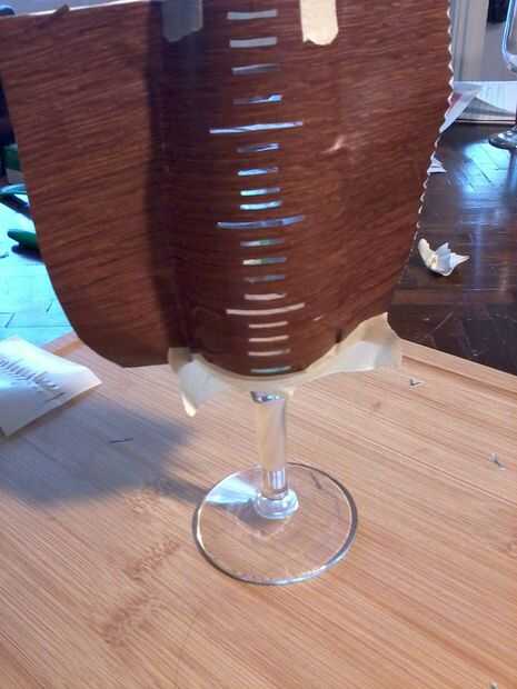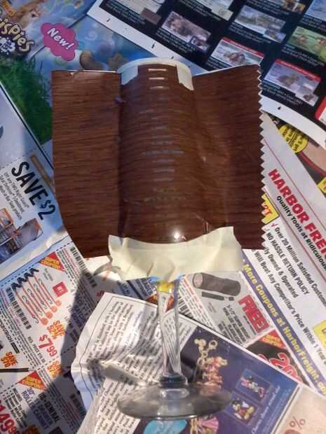 Utilice cinta adhesiva para cubrir sobre 2-4" alrededor de los bordes de la plantilla, dependiendo del tamaño del vidrio. No quiero dejar ningún espacio para goteos llegar a la Copa!