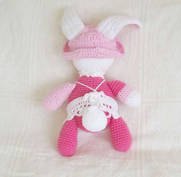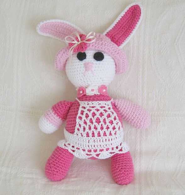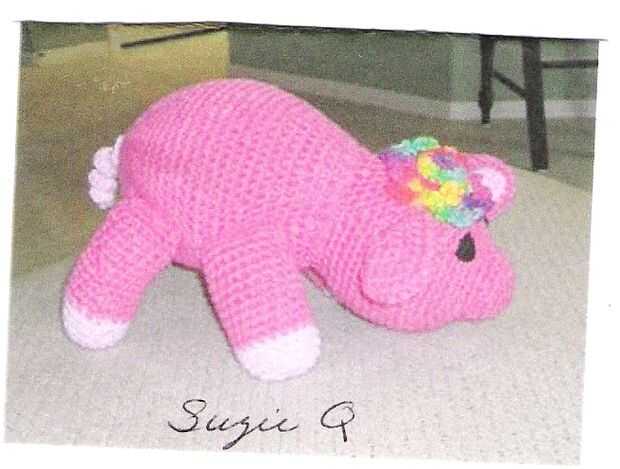 Bunny Madaline Rose fue un divertido proyecto. He encontrado su patrón en la "knitsimple" primavera/verano 2007 Revista. Usar hilo de algodón facilidad de León marca ganchillo su cuerpo como instrucciones. He añadido mi propio diseño para su sombrero, el puente y el collar. también hice "Suzie Q", un cerdo que estaba en la misma revista. Tengo una tienda en ETSY que haya punto sombreros, accesorios y Ángeles de papel. www.PamelaJean.Etsy.com
