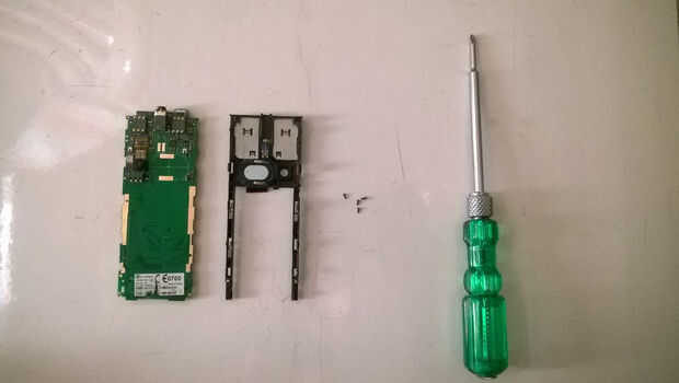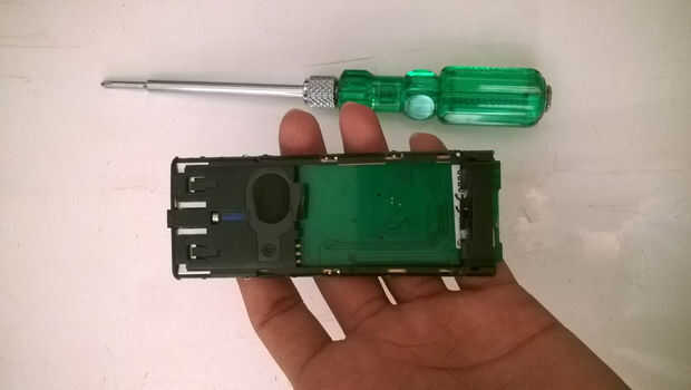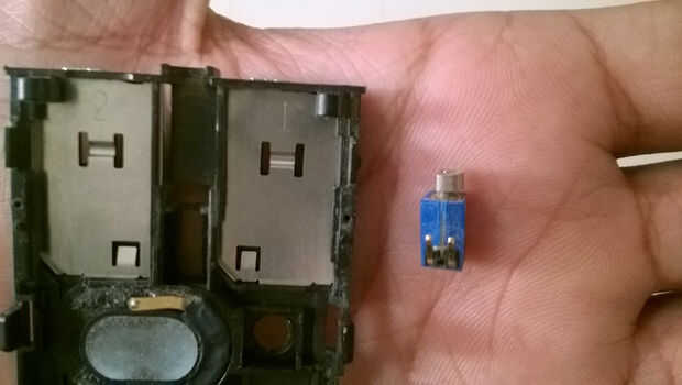 Ahora, con el destornillador, abrir el móvil. Allí encontramos la cosa principal, Motor de vibración. Sacar cuidadosamente.