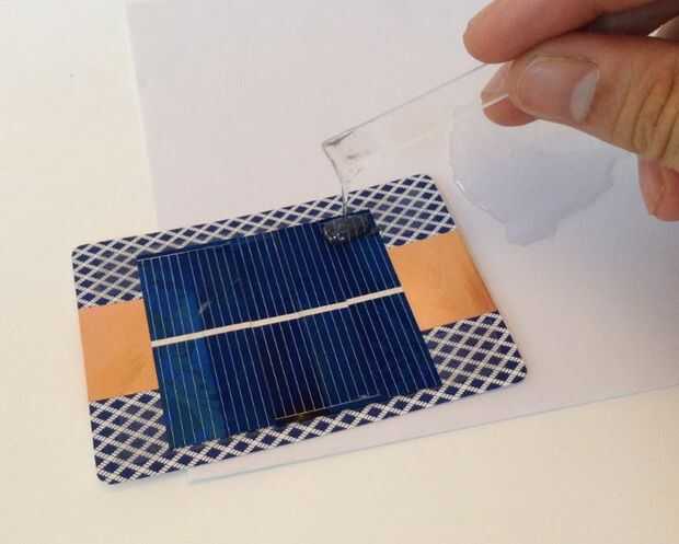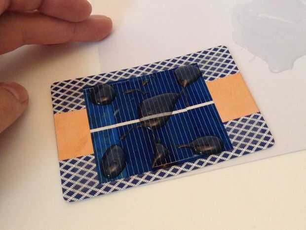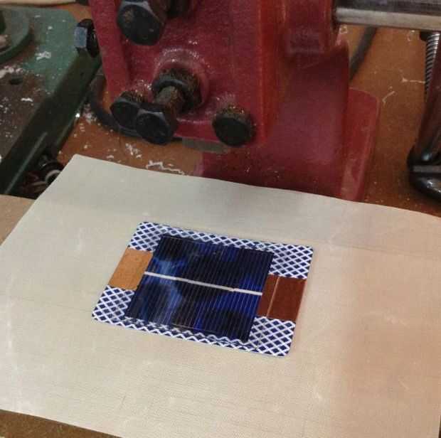Deje que la curación de sandwich durante unos 10 minutos, luego retire el peso y listo! El panel debe ahora poner alrededor 2.5Vopen y 150mA - 200mA Isc en plena luz del sol. Incluso un poco menos corriente desde el panel funcionará bien para encender el localizador motor full tilt ya que los motores consumen sólo decenas de mA a 2VDC.