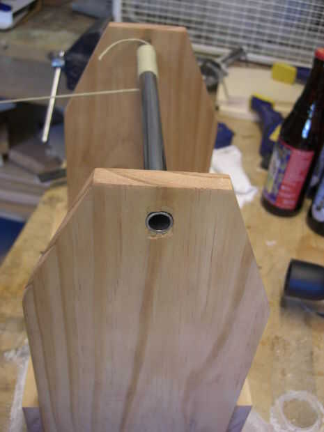 -(Opcional) puede envolver el mango con la guita. Se necesita alrededor de 30 pies de cuerda fina (o menos si utilizas hilo más grueso). Empezar por atar un ballestrinque en uno de los extremos. Continúan firmemente envolver el hilo alrededor del tubo de espiga hasta el final. Acabar con otro ballestrinque.