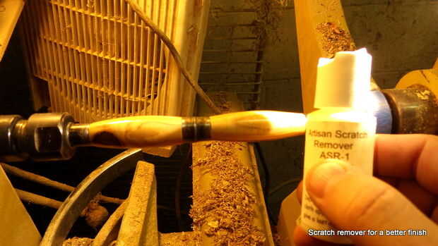 Pulido es el siguiente paso. Usar un removedor de acrílico rayado. http://www.arizonasilhouette.com/Product/BG017.ht... Con el torno en, poner una gota en mi dedo y frote hacia delante y hacia atrás en el espacio en blanco para un corto período de tiempo y luego límpielo con una toalla de papel limpia. (ver la segunda foto de arriba) La pluma se ve incluso mejor después de este paso, sin embargo hay un acabado mejor que nosotros podemos producir!