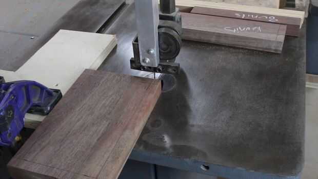 . A continuación hice un tablero con un conocido 90 buena * ángulo y asegurada a mi sierra de cinta para hacer una valla paralela (si ya tiene su sierra de banda de una cerca de usted está un paso por delante!) y el margen de 1/2 alineado con la hoja. Ahora estamos listos para el primer corte.