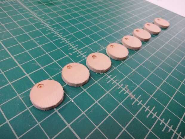 Para estos discos pata tacos, utilicé una varilla de mezclar pintura y cortar círculos medianos de níquel. Estas fueron pegadas en su lugar.