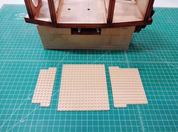 He birlado unas placas de LEGO de tierra color tan de alijo de mis hijos de LEGO y pegados de las secciones de estos hasta la base del cuerpo.