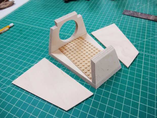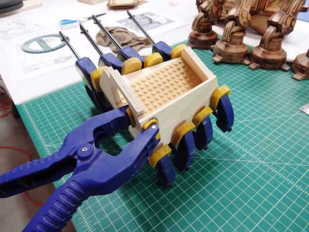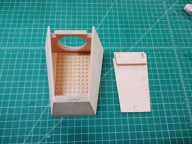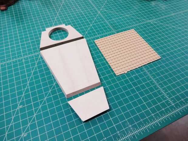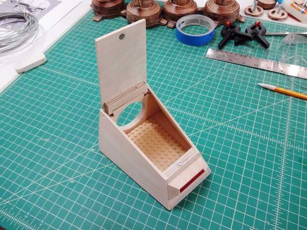 Un patrón fue hecho, y piezas se recorte y pegadas para arriba. Una escotilla superior fue creada con bisagras similares a lo que se hizo en el cuerpo.