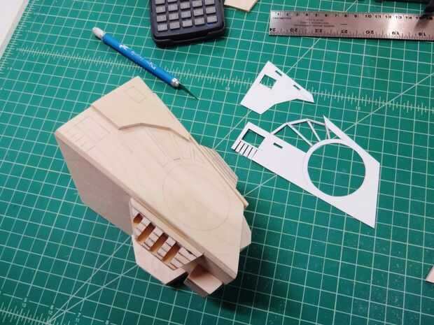 Para los detalles de la cabina, varios trozos de madera fueron cortar, pegados para arriba, lijados y pegados en lugar.